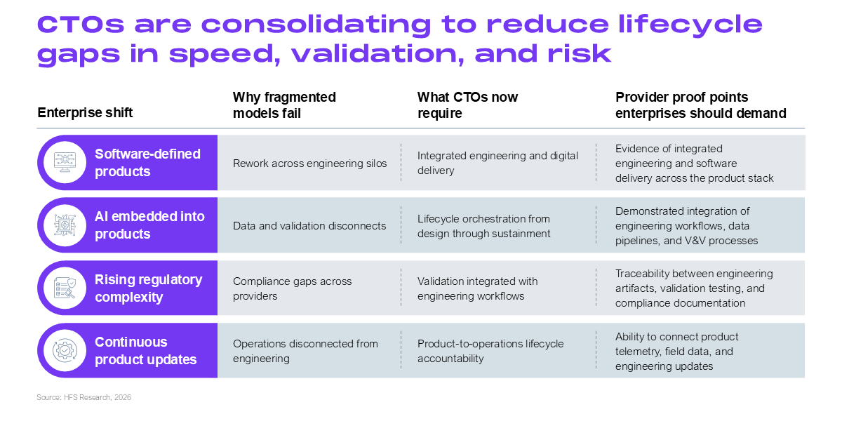 CTOs are consolidating toward partners that can unify engineering, digital, and AI across the product lifecycle.