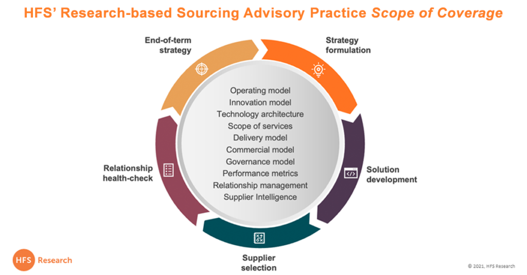 1. The role of analysts and advisors is converging and HFS provides the perfect balance. Only *5% of enterprises are leveraging the Big 4 or Sourcing advisors to handle the entire sourcing process from screening through to implementation and governance. (*Based on HFS Research of 150 C-level executives across G2000 enterprises, 2021).  HFS manages the most highly engaged community of enterprise leaders and applies great research and advisory to help them.  Sourcing advisory needs a fresh, trusted face, and that is HFS!