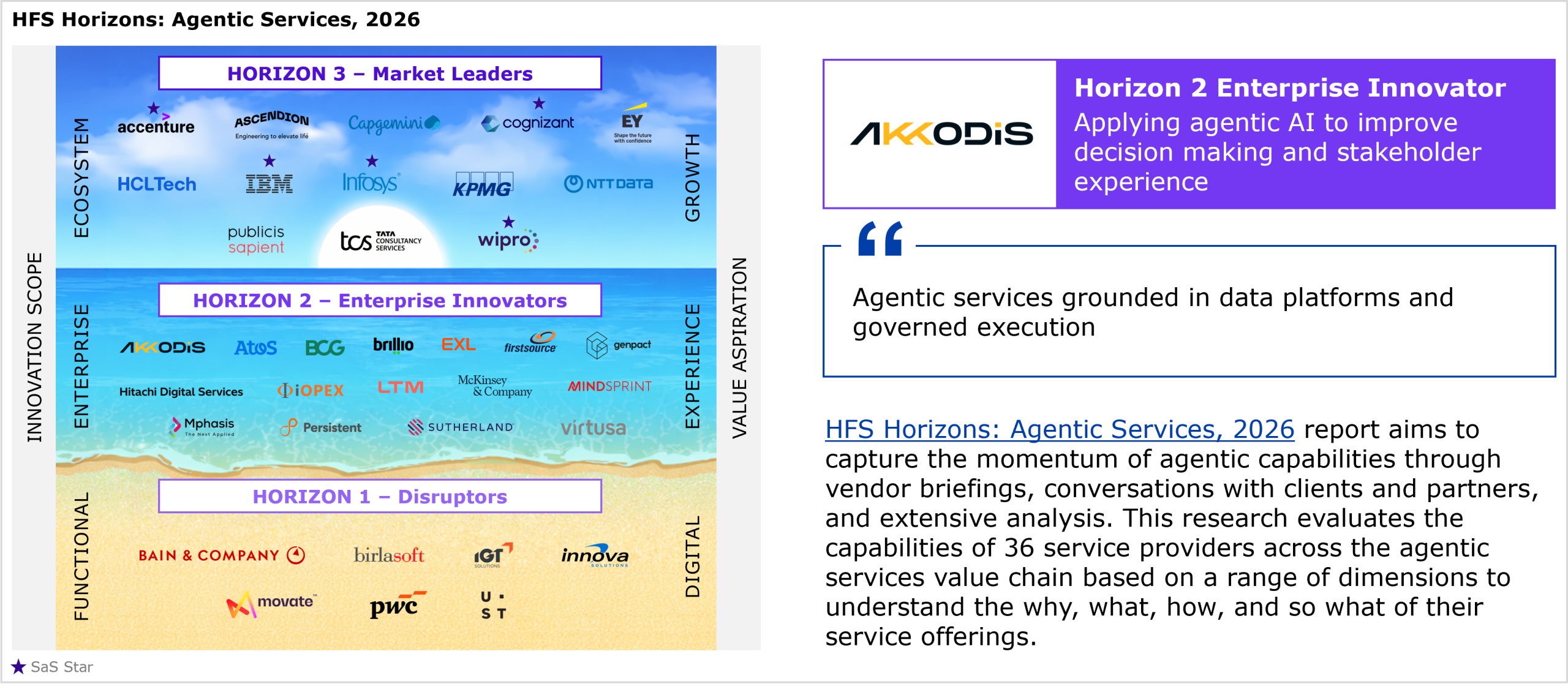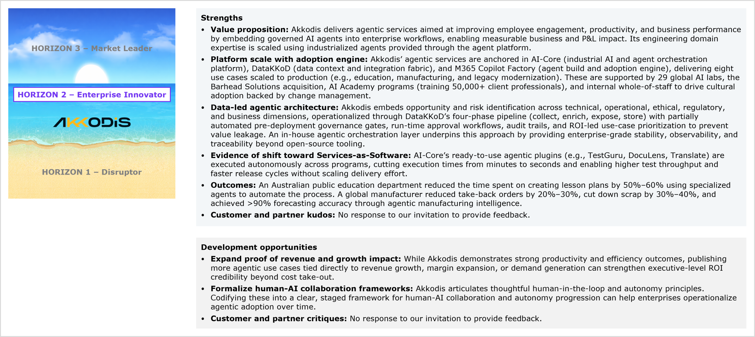 Akkodis’ performance in the study and HFS’ views of its strengths and development opportunities for agentic services capabilities