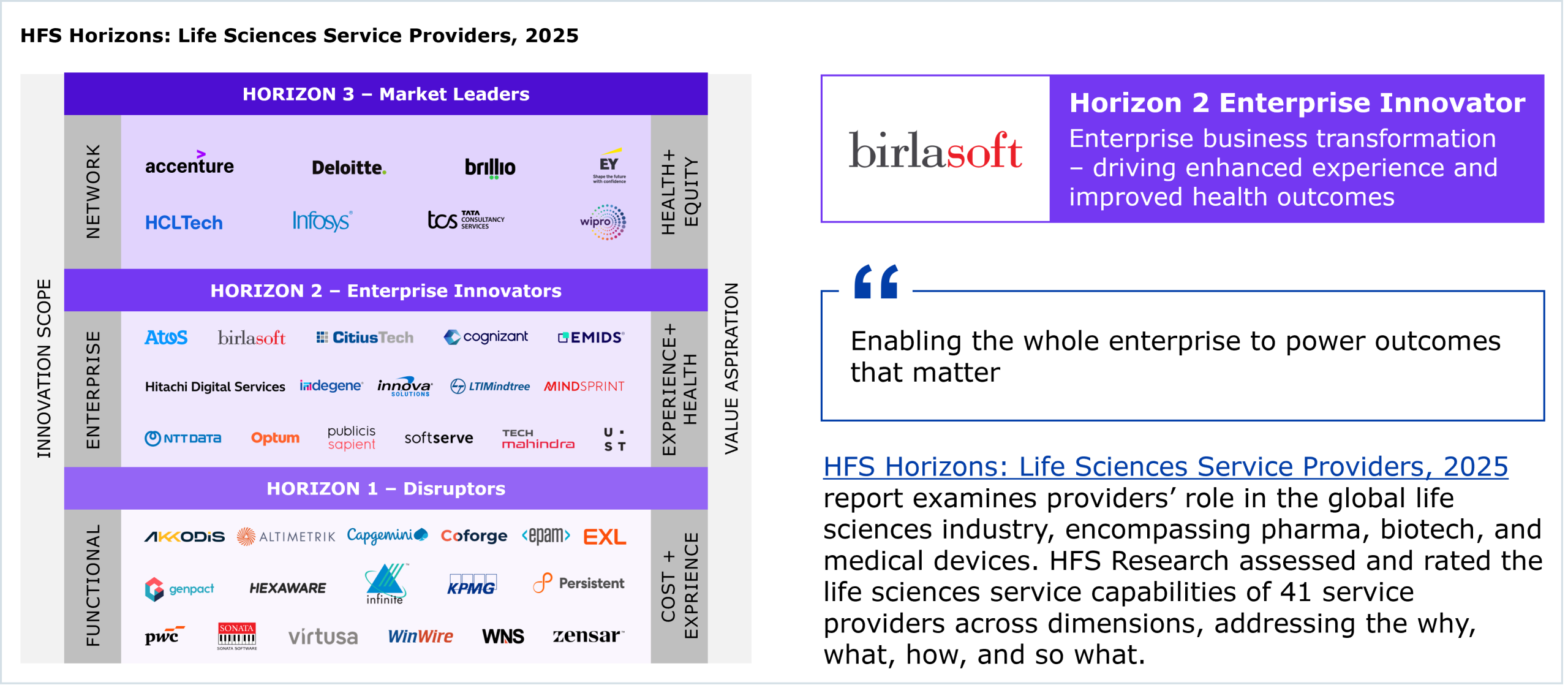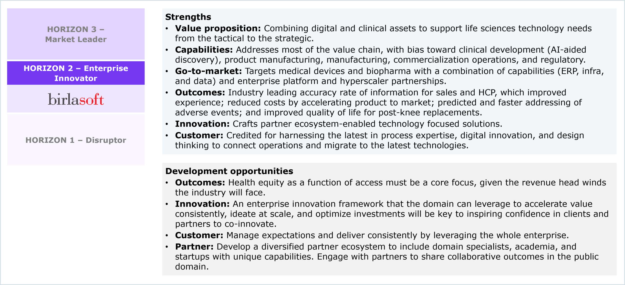 Birlasoft’s performance in the study and HFS’ views of its strengths and development opportunities for life sciences service capabilities