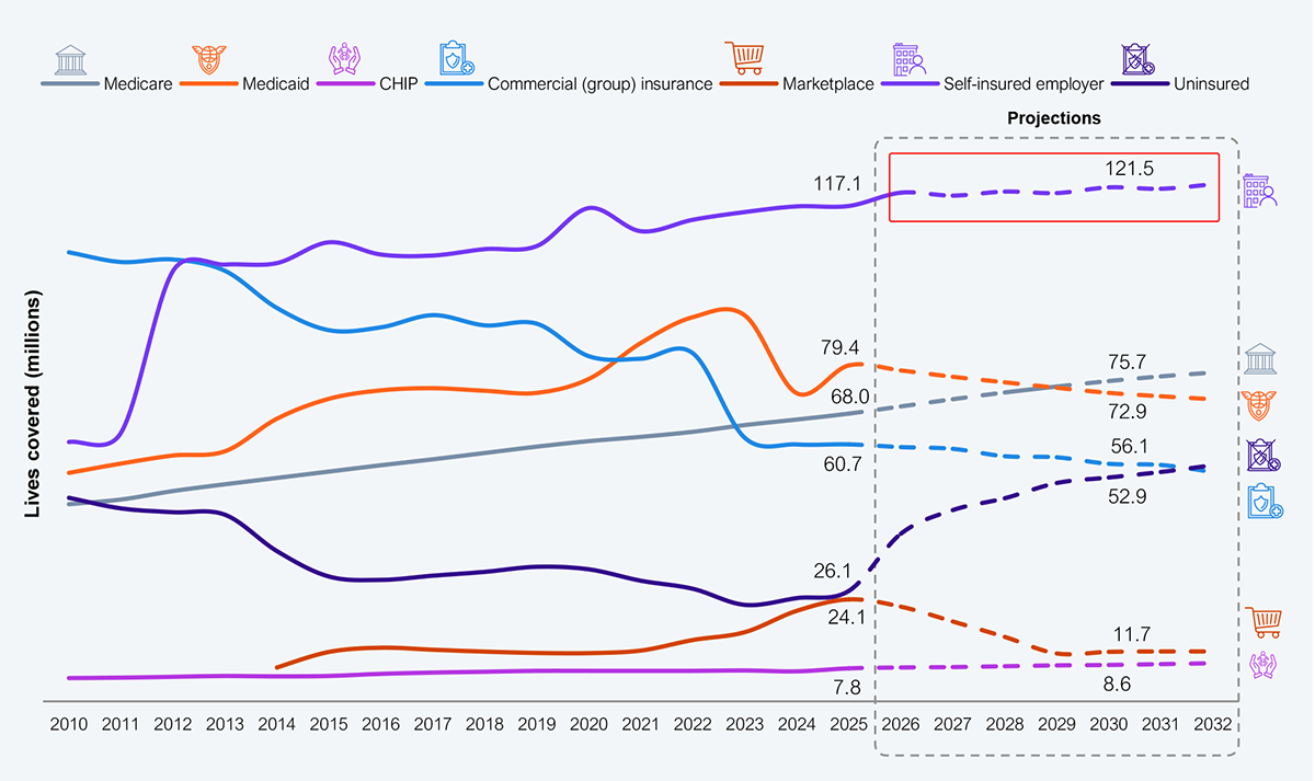 Source: CMS, CBO, KFF, US Bureau of Labor Statistics, HFS Research, 2026