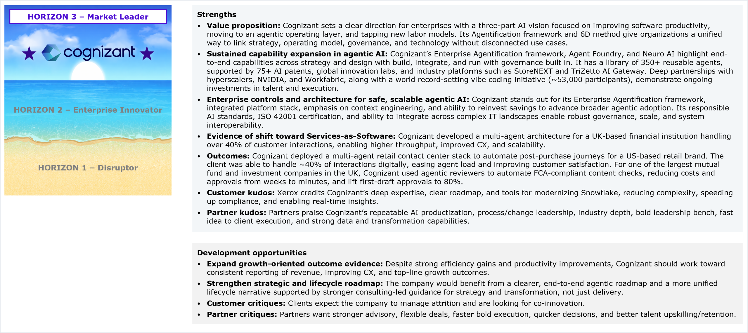 Cognizant’s performance in the study and HFS’ views of its strengths and development opportunities for agentic services capabilities