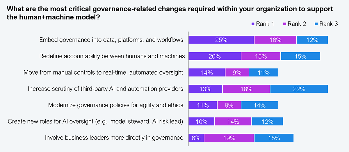 Enterprises are now trying to control three quickly colliding layers of complexity at once: cloud infrastructure, sprawling SaaS estates, and a new wave of AI tools and agents. Most enterprises still manage cloud resources in one stack, SaaS applications in another, and AI risk through a patchwork of policy, manual controls, and wishful thinking. That was tolerable when cloud, SaaS, and AI were bought and run separately, but as the human+AI model becomes prevalent, this approach becomes unfeasible. A study by HFS Research found that embedded governance is the biggest challenge that organizations currently face (see Exhibit 1).
