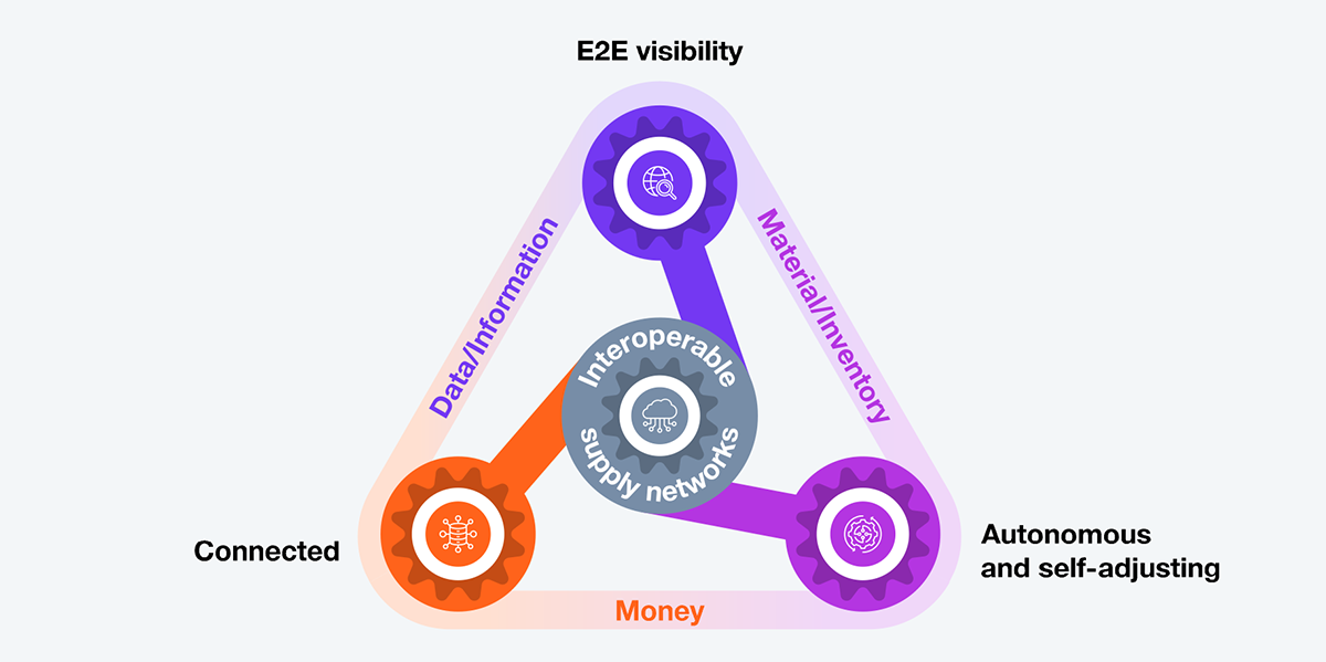 - Autonomous and self-adjusting to orchestrate change faster than disruption. Interoperability peaks when the network self-corrects. A change in one node, such as an order, payment, or quality alert, automatically triggers synchronized actions across the ecosystem. The goal is not automation for efficiency, but autonomy for resilience where supply engines can sense, decide, and act without waiting for permission.