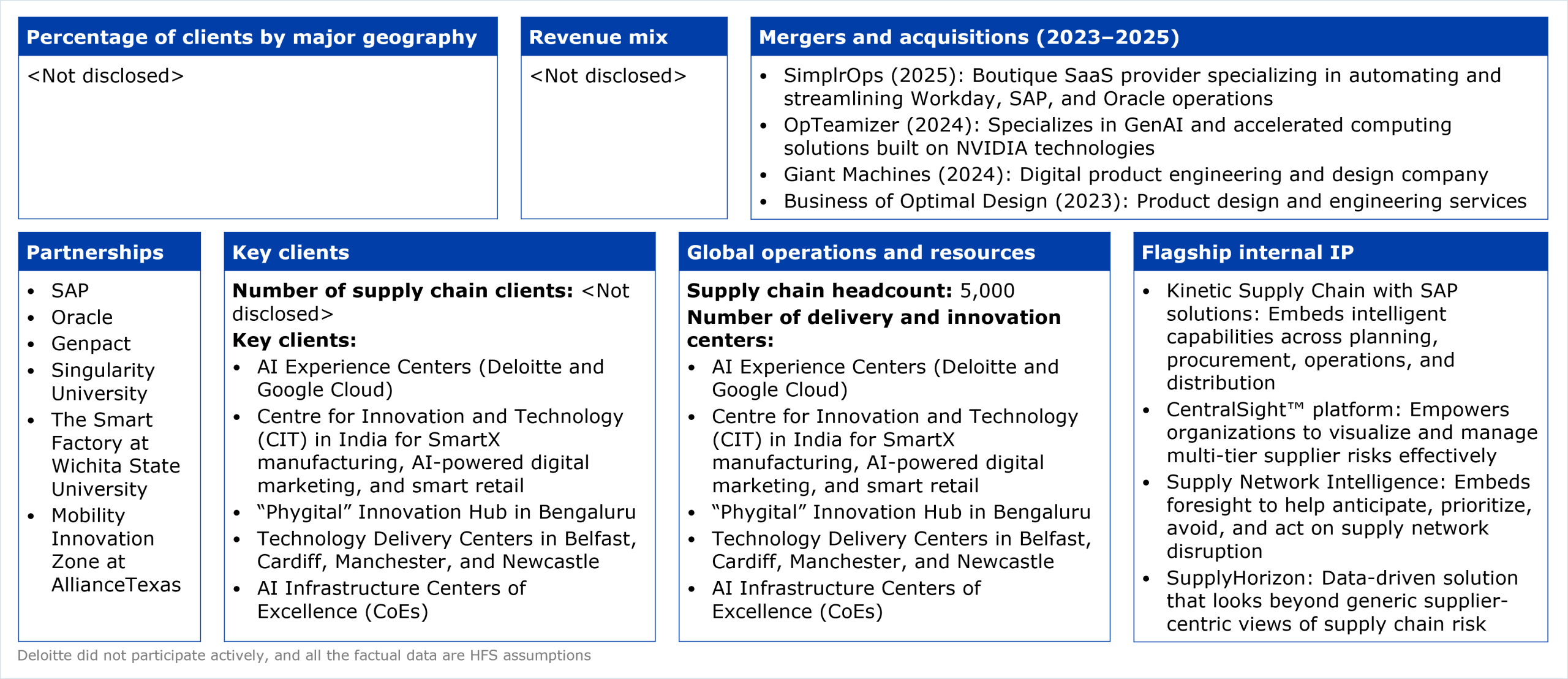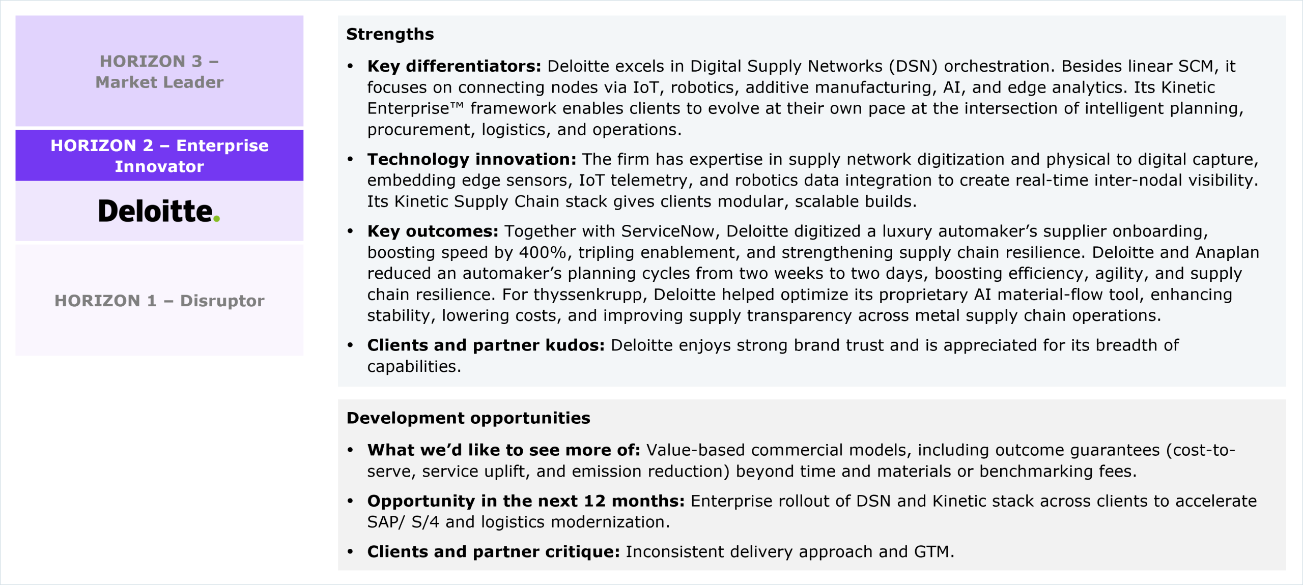 Deloitte’s strengths and development opportunities, as per HFS’ analysis, in intelligent supply chain services capabilities