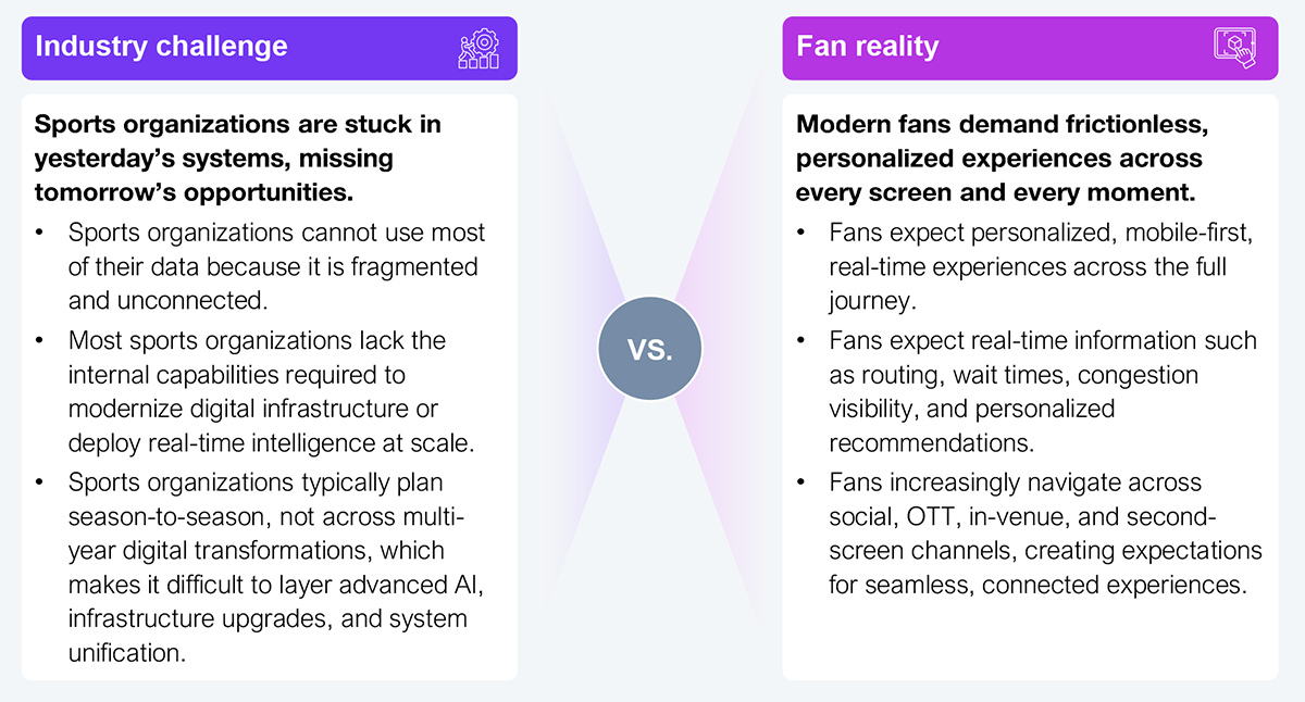 As fan expectations for immersive, mobile-first experiences continued to rise, TSE had a valuable opportunity to modernize its back-office and stadium systems to better meet those needs. Growing demand for seamless digital engagement highlighted the importance of strengthening connectivity and unifying venue technologies across navigation, concession, and crowd-flow management to drive greater operational efficiency, improved fan satisfaction, and new revenue potential. Exhibit 1 illustrates why this opportunity extends beyond TSE, underscoring the industry-wide momentum toward innovative, next-generation stadium experiences.