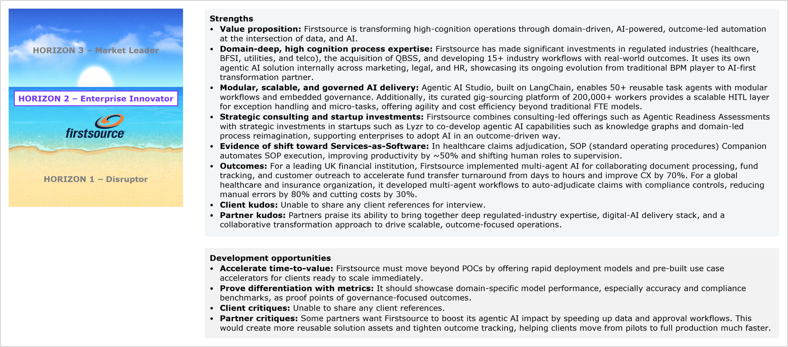 Firstsource’s performance in the study and HFS’ views of its strengths and development opportunities for agentic services capabilities