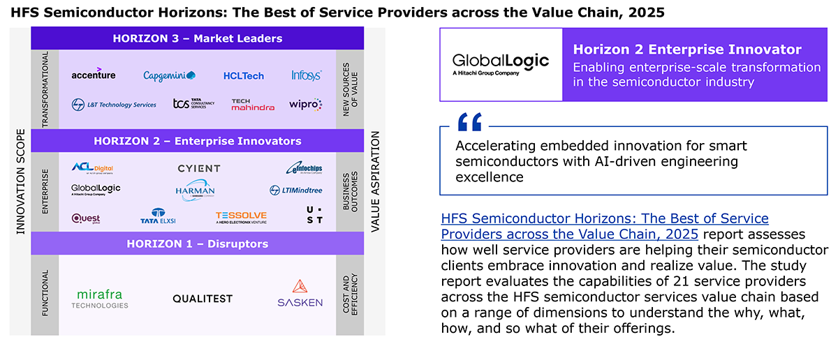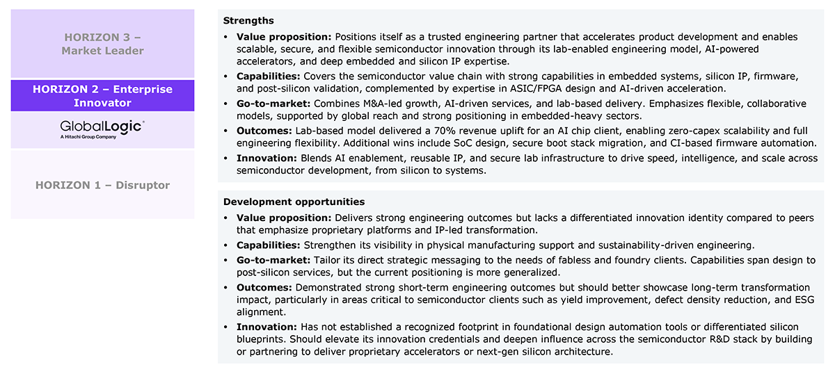 GlobalLogic’s performance in the study and HFS’ views of its strengths and development opportunities for Semiconductor services capabilities