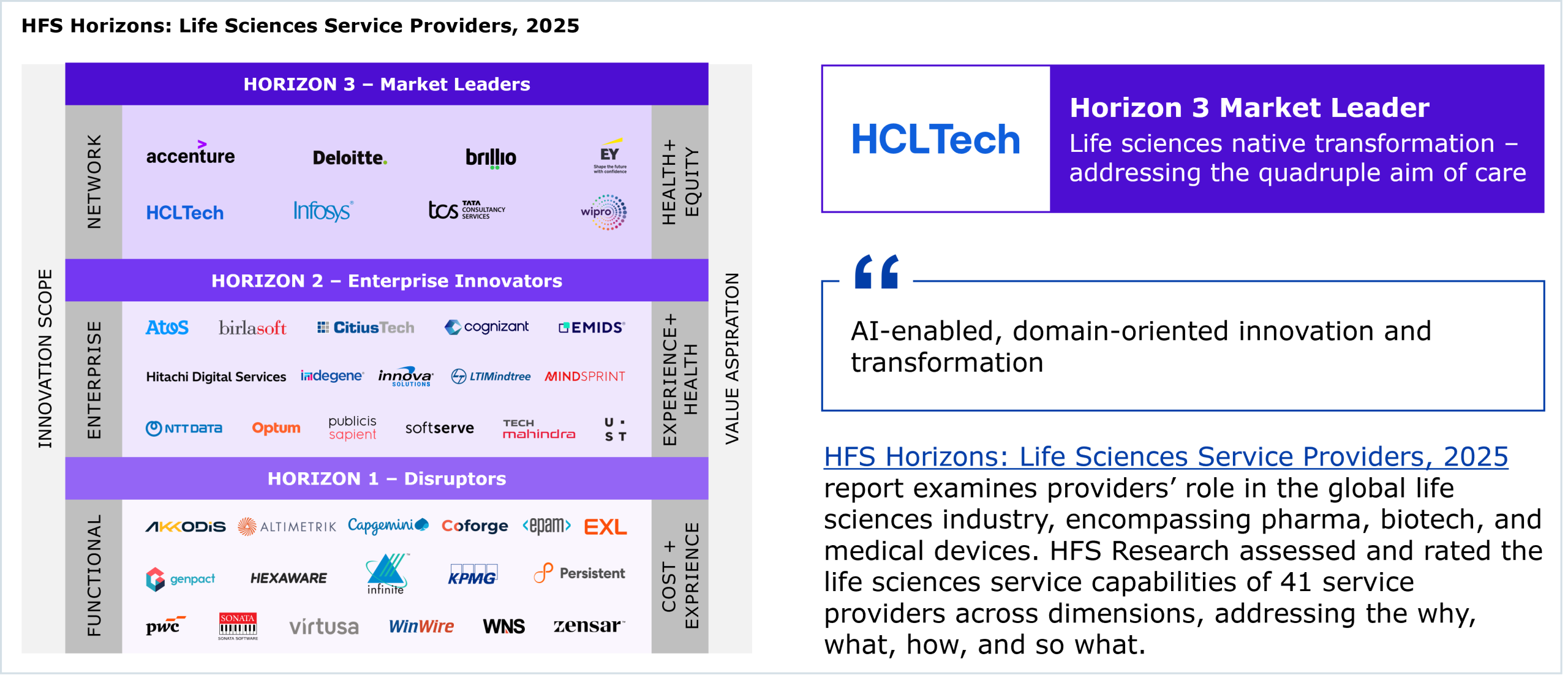 HCLTech’s performance in the study and HFS’ views of its strengths and development opportunities for life sciences service capabilities