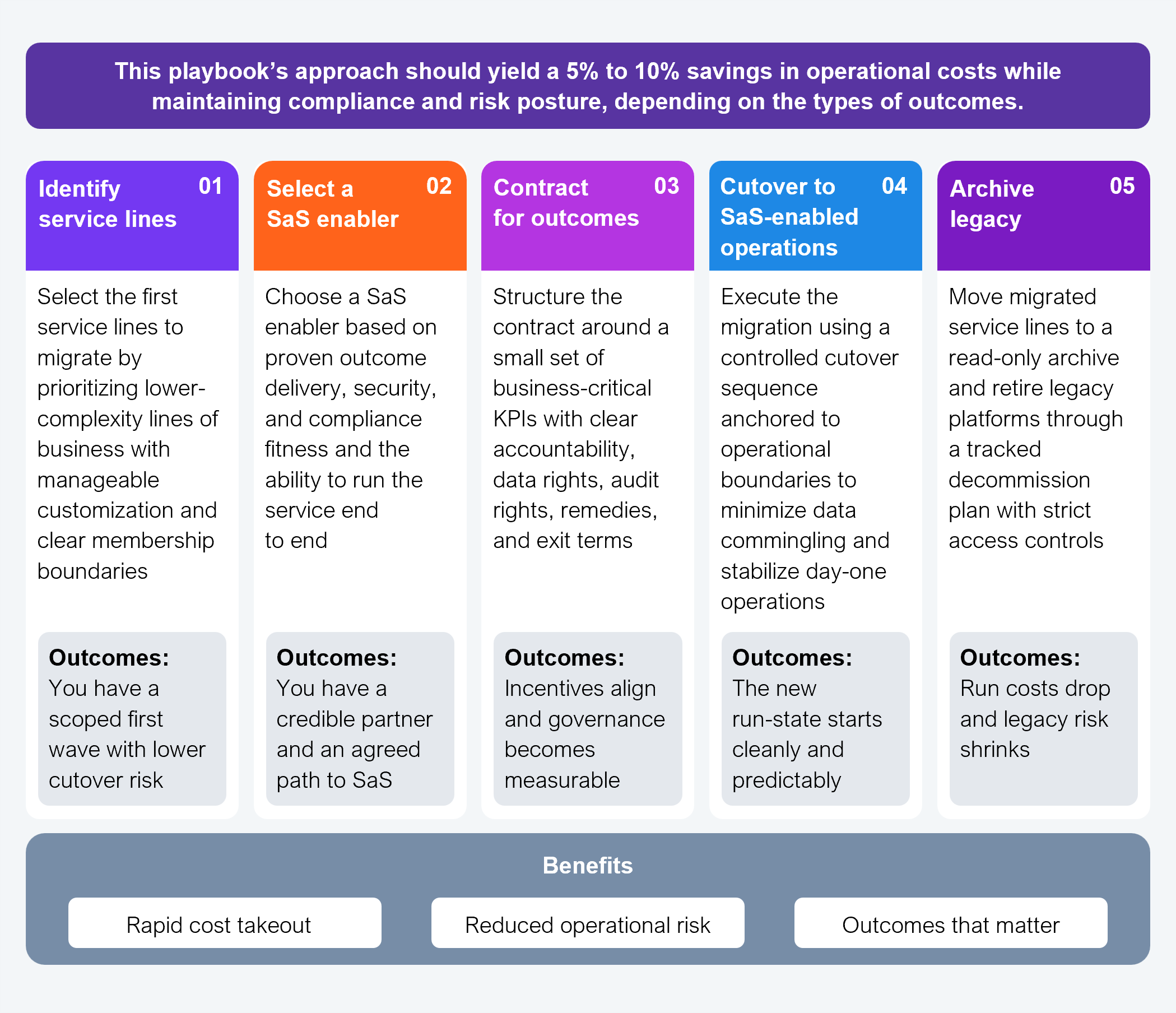 This playbook’s approach should yield a 5% to 10% savings in operational costs while maintaining compliance and risk posture, depending on the types of outcomes.