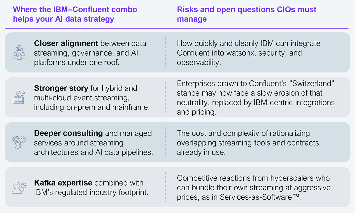 IBM dropped $11 billion on Confluent on Monday, December 8. It’s essentially after the data streaming layer that it has never been able to build itself. This deal creates a data fabric for CIOs and transformation leaders juggling hybrid cloud, AI roadmaps, and Kafka sprawl. The biggest promise is that you can now connect applications, data, and agents in real-time, but not without the risk of getting entangled in Big Blue’s orbit.