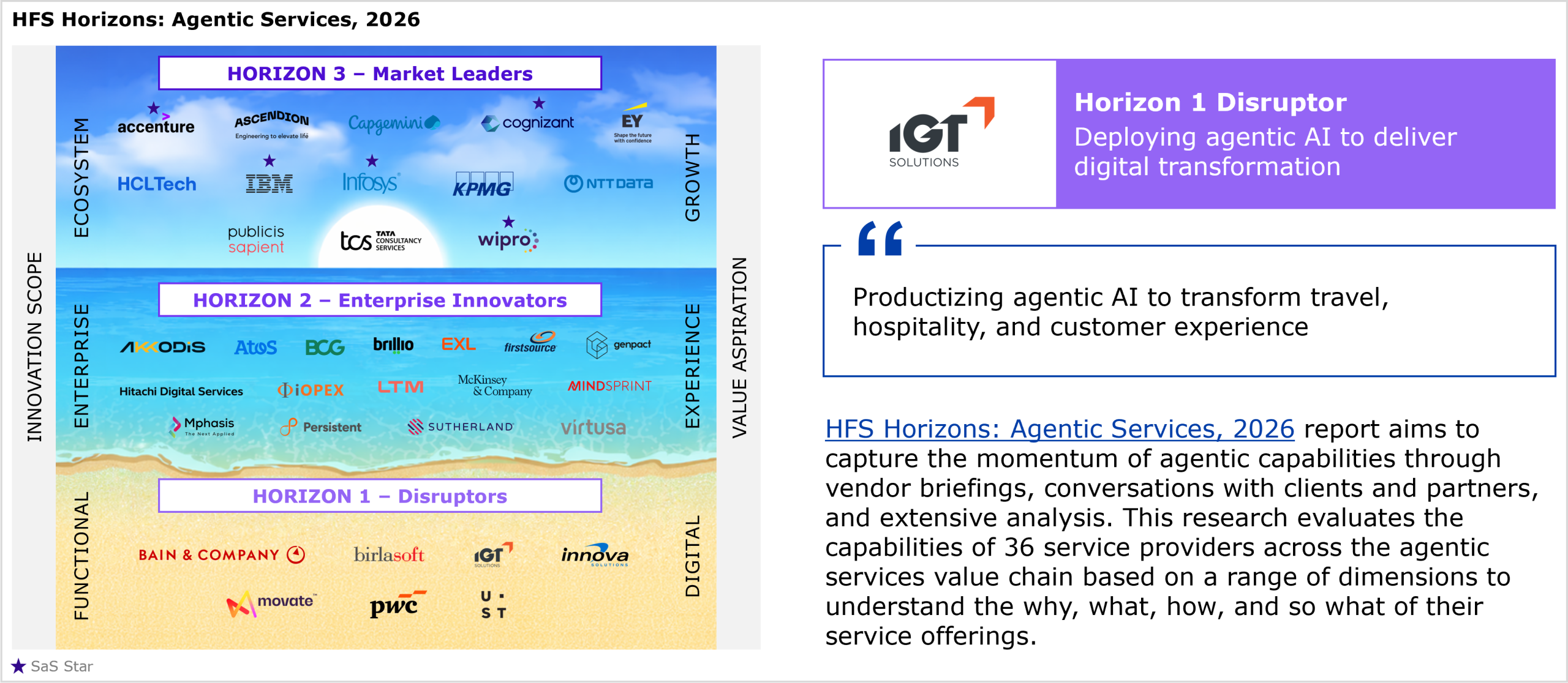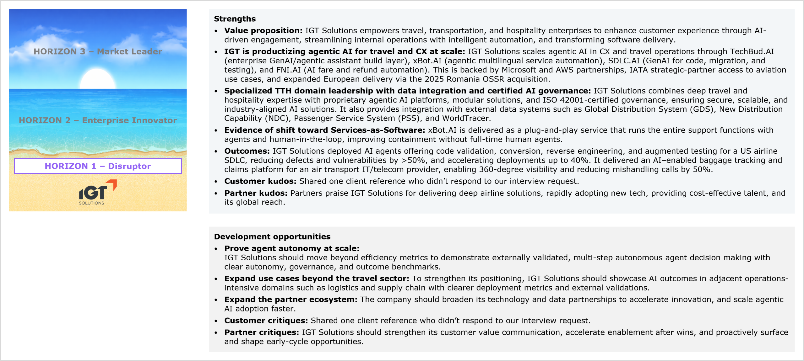 IGT Solutions’ performance in the study and HFS’ views of its strengths and development opportunities for agentic services capabilities