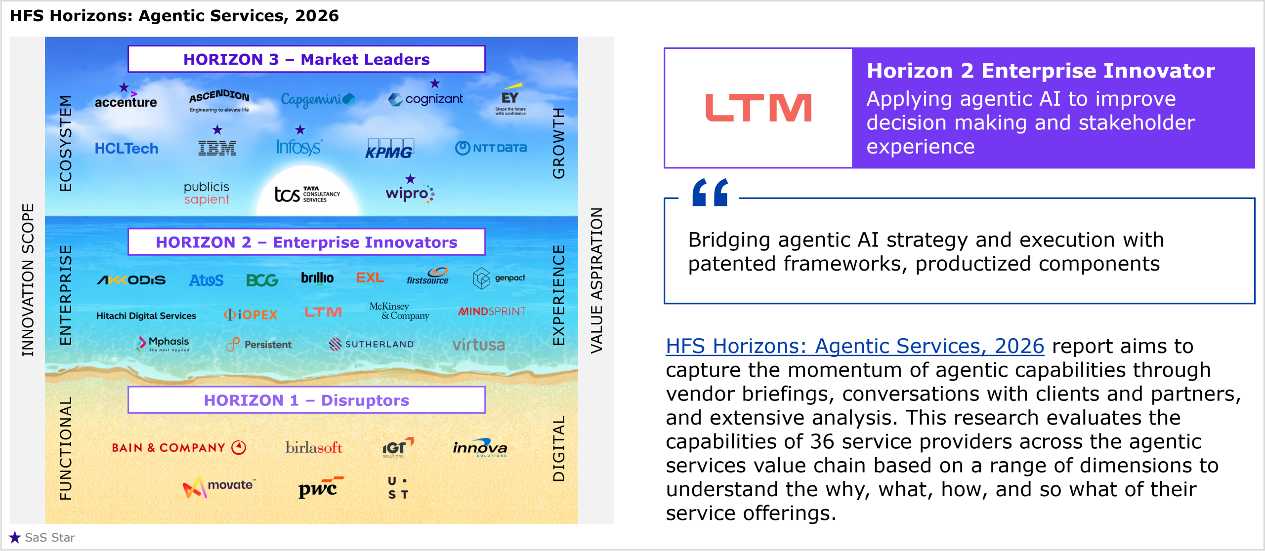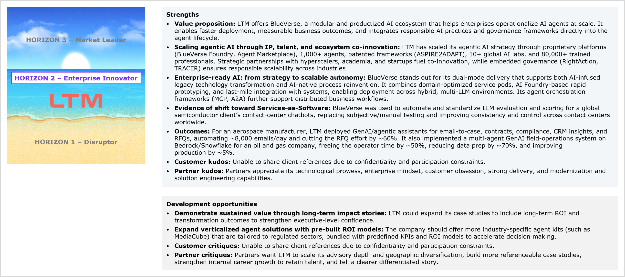 LTM’s performance in the study and HFS’ views of its strengths and development opportunities for agentic services capabilities