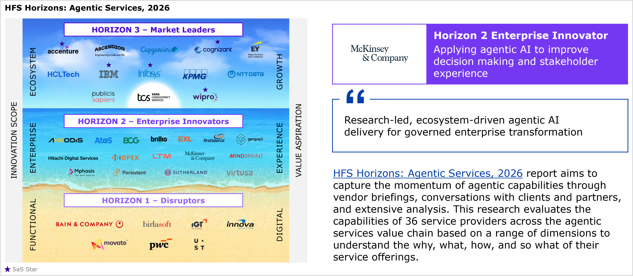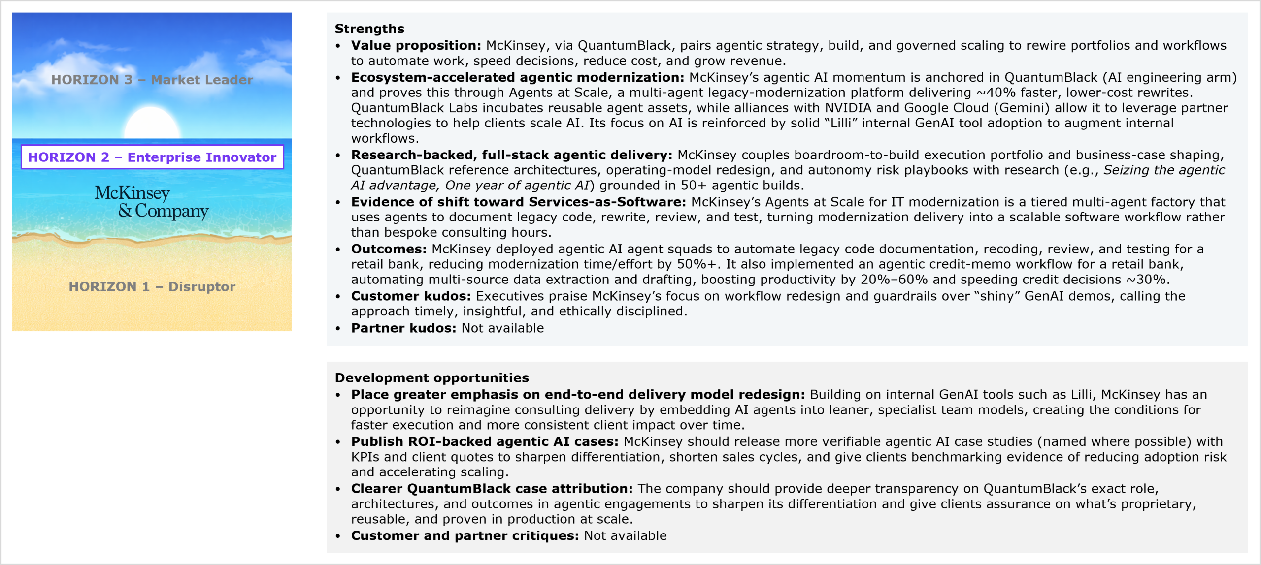 McKinsey’s performance in the study and HFS’ views of its strengths and development opportunities for agentic services capabilities