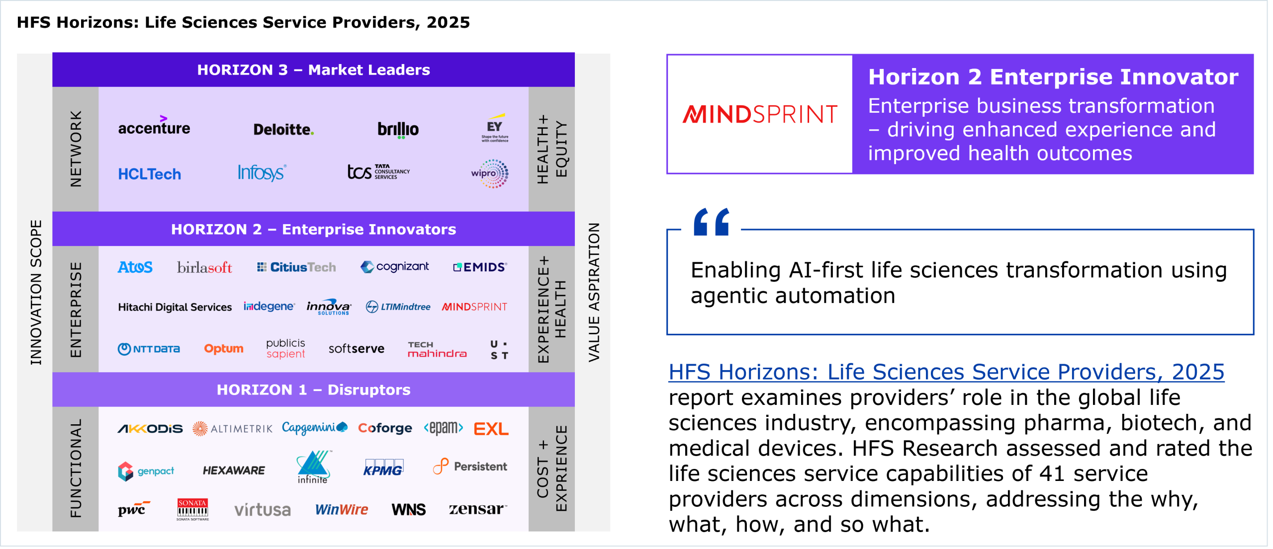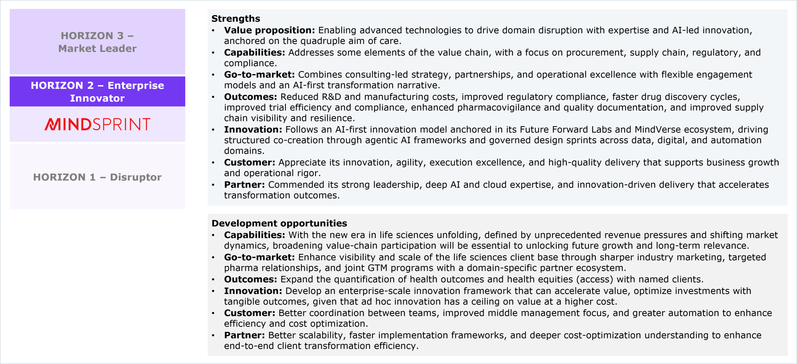 Mindsprint’s performance in the study and HFS’ views of its strengths and development opportunities for life sciences service capabilities