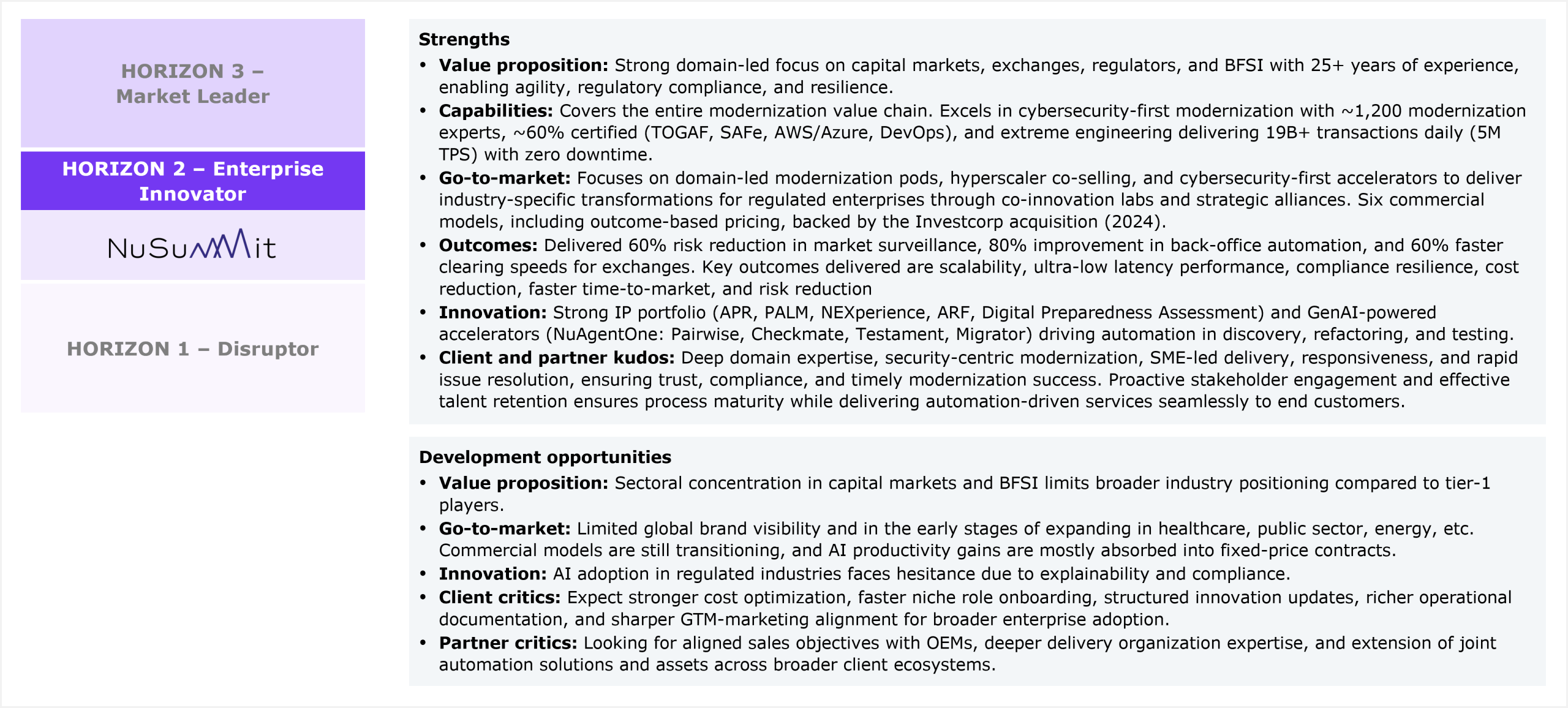 NuSummit’s strengths and development opportunities, as per HFS’ analysis, in legacy application modernization services capabilities