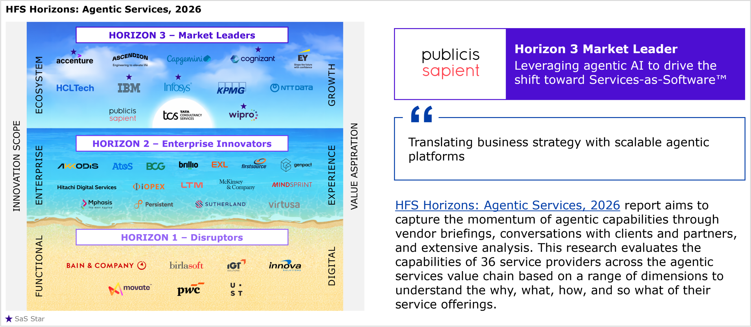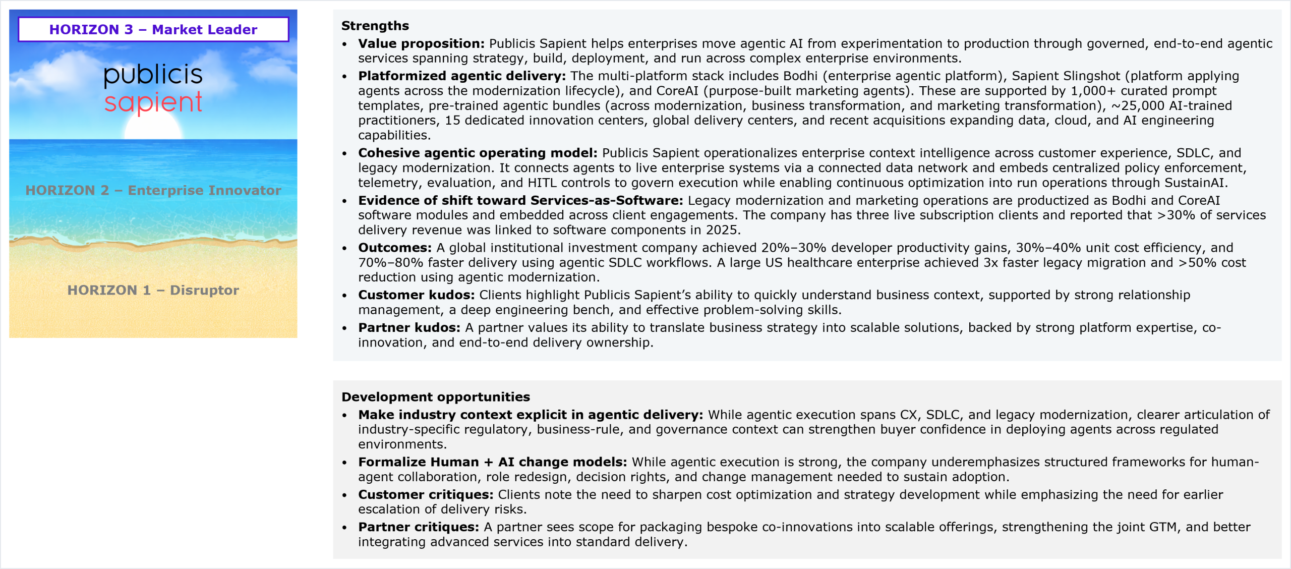 Publicis Sapient’s performance in the study and HFS’ views of its strengths and development opportunities for agentic services capabilities