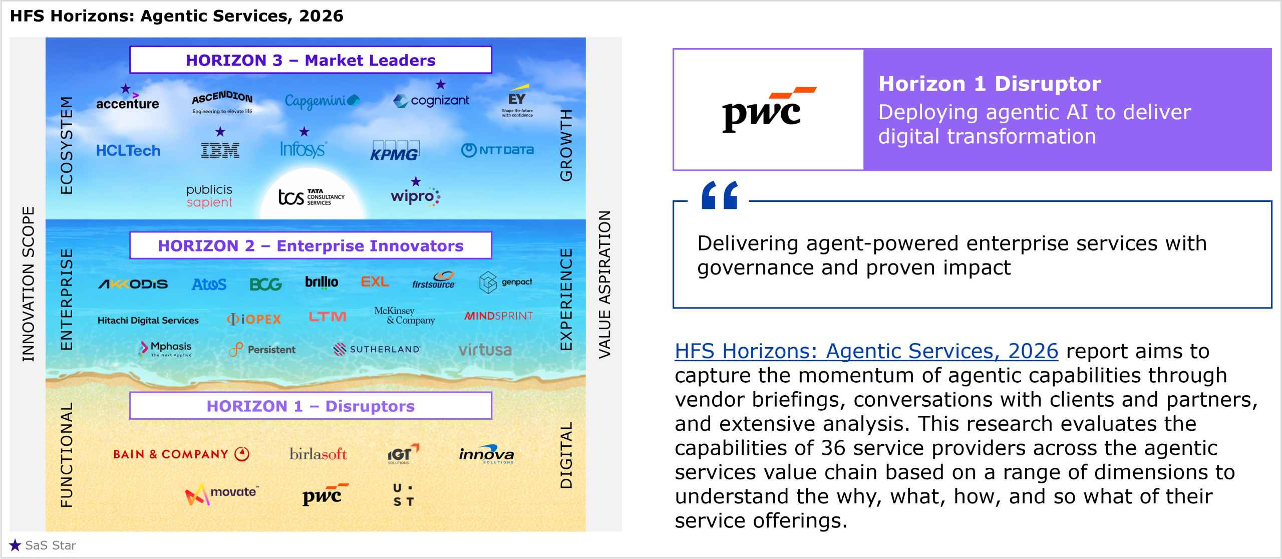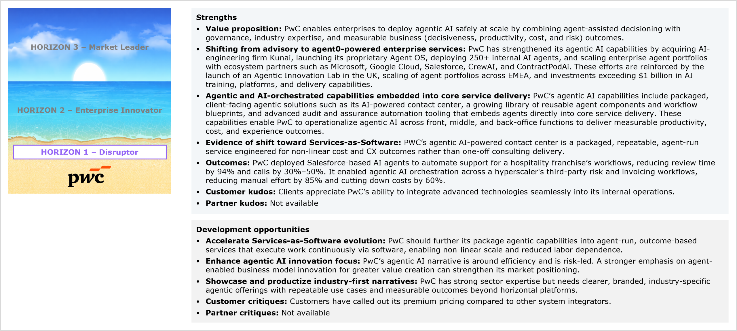 PwC’s performance in the study and HFS’ views of its strengths and development opportunities for agentic services capabilities
