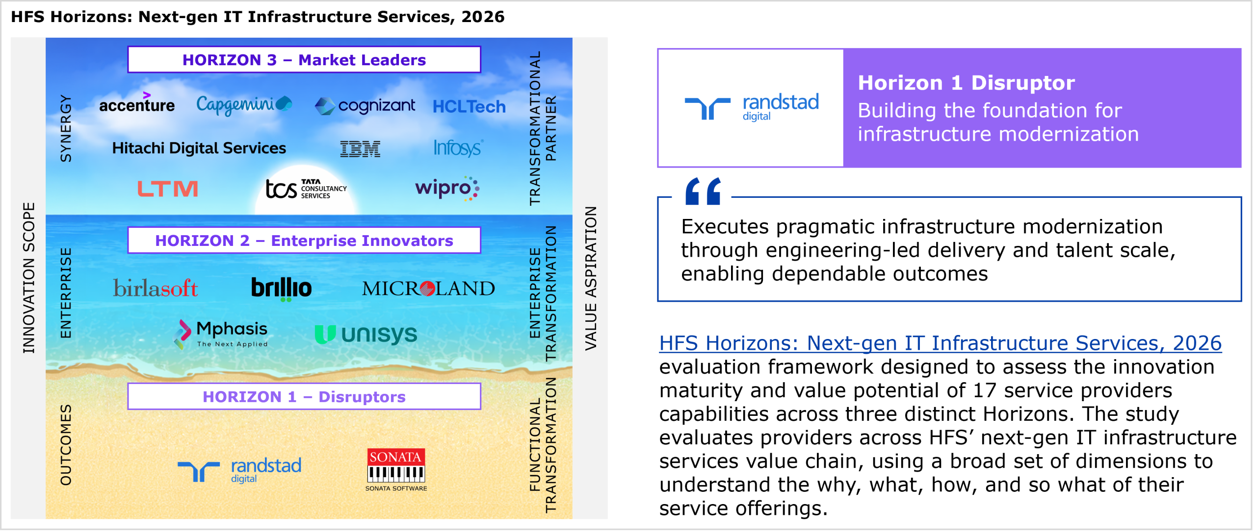 Randstad’s performance in the study and HFS’ views of its strengths and development opportunities for next-gen IT infrastructure services capabilities