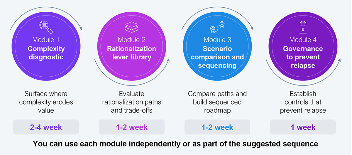 The HFS Supply Chain Rationalization Navigator is a four-module decision environment that gives leadership teams a structured path from diagnosis to action.