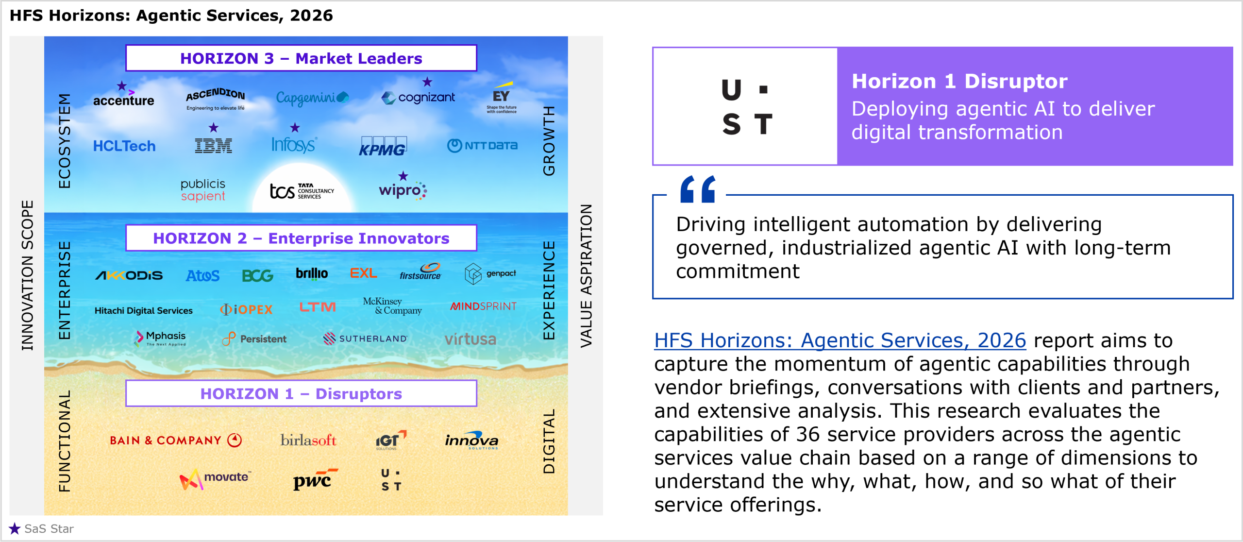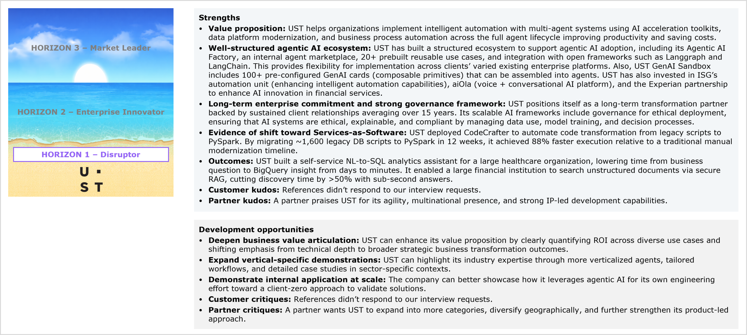 UST’s performance in the study and HFS’ views of its strengths and development opportunities for agentic services capabilities