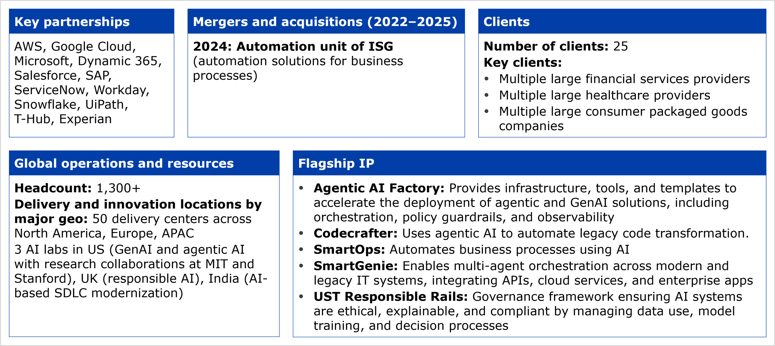 Key facts about UST’s agentic services capabilities