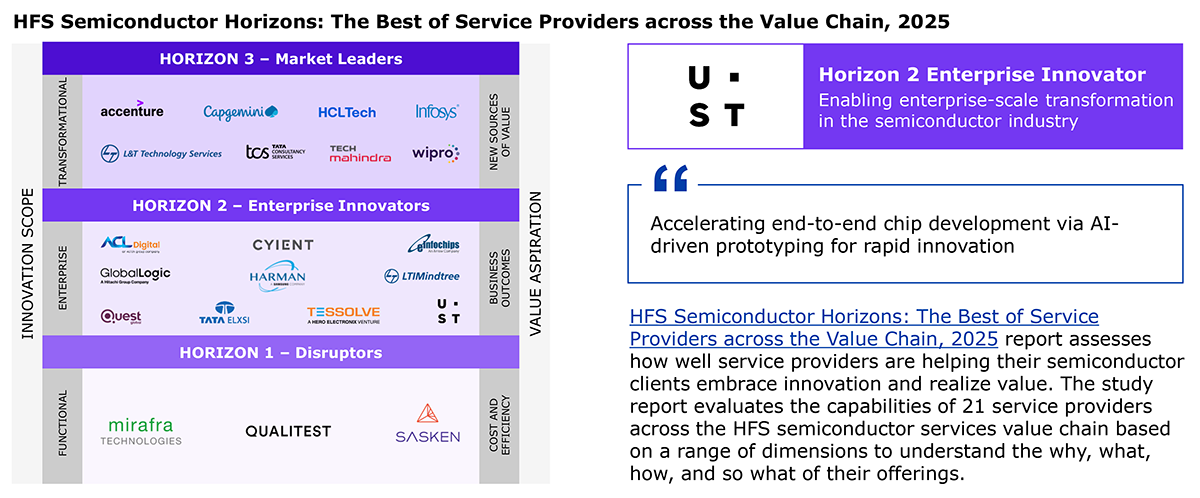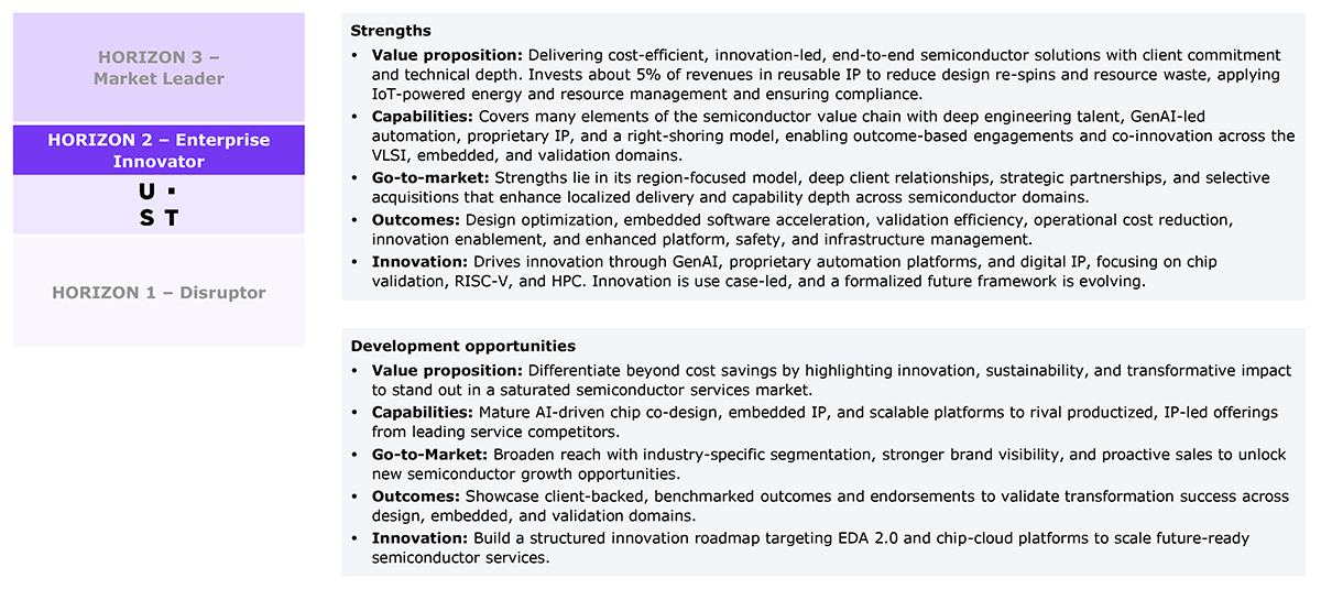 UST’s performance in the study and HFS’ views of its strengths and development opportunities for Semiconductor services capabilities