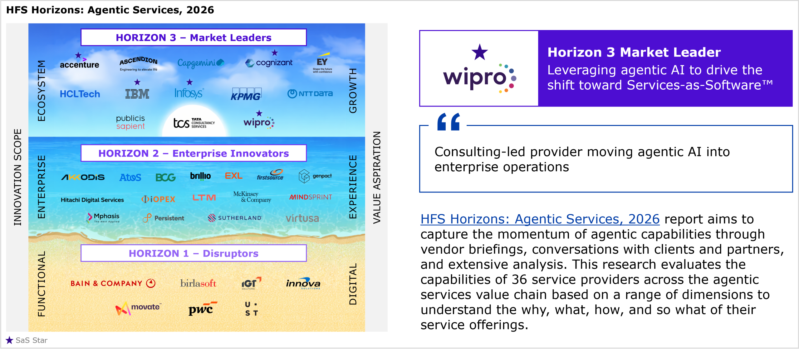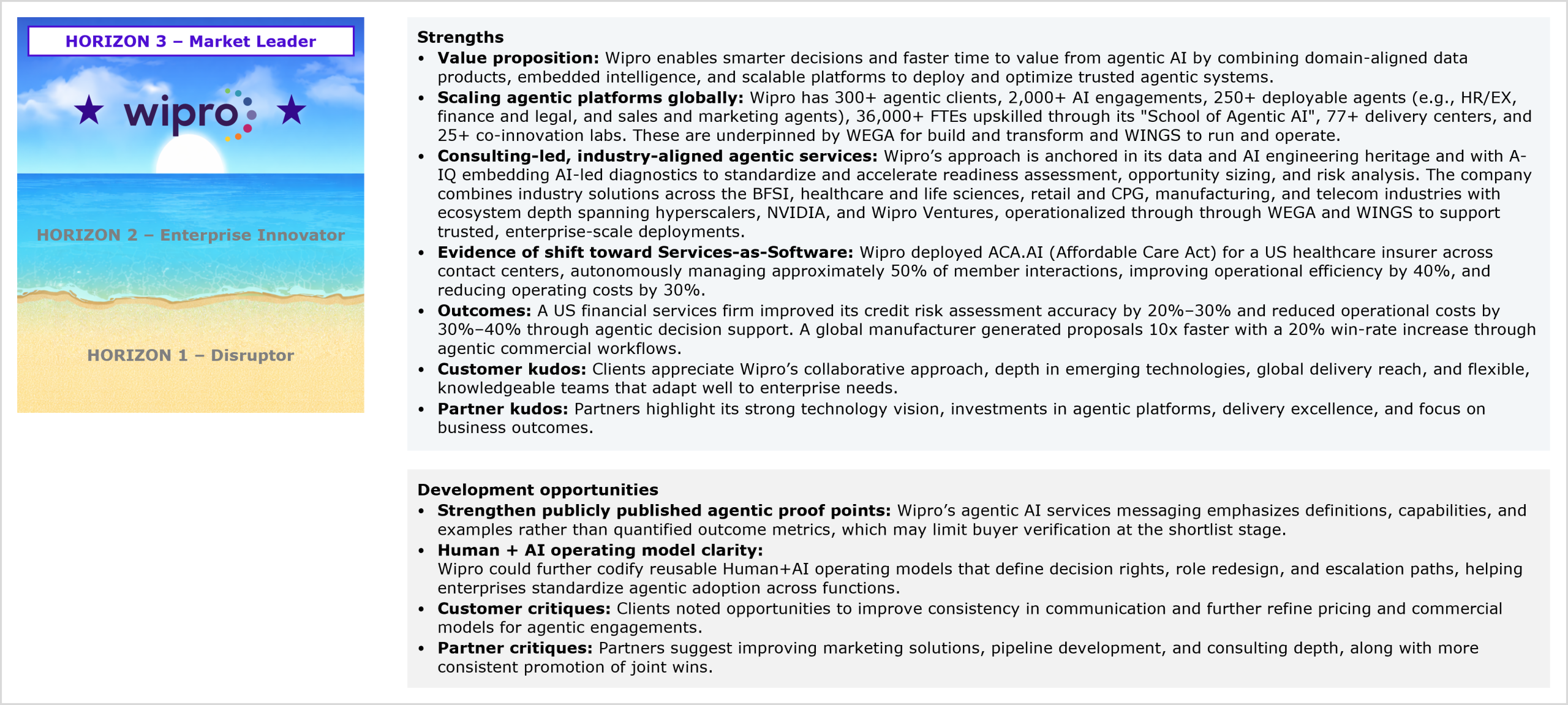 Wipro’s performance in the study and HFS’ views of its strengths and development opportunities for agentic services capabilities