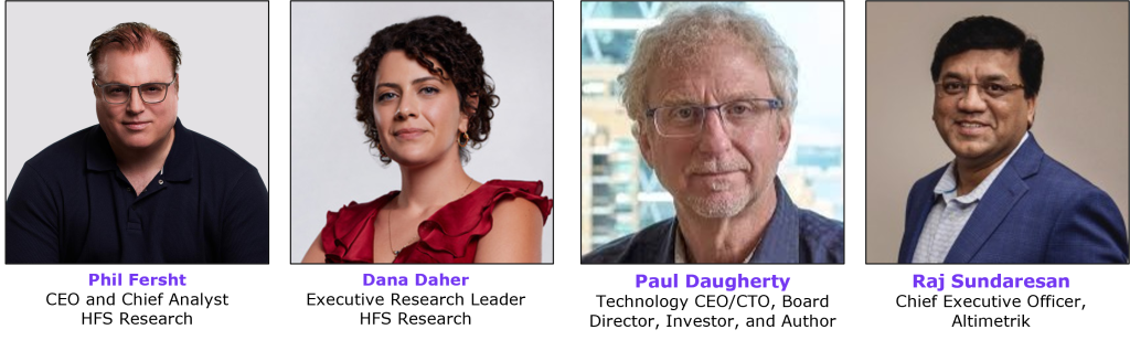 Join our CEO and Chief Analyst Phil Fersht, HFS Executive Research Leader Dana Daher, Paul Daugherty, Technology CEO/CTO, Board Director, Investor, and Author, and Raj Sundaresan, CEO of Altimetrik, for a candid, executive-level discussion on whatโ€™s holding enterprises back from scaling AI beyond pilots into real business outcomes, and how to move from assistants to truly scalable, accountable AI.