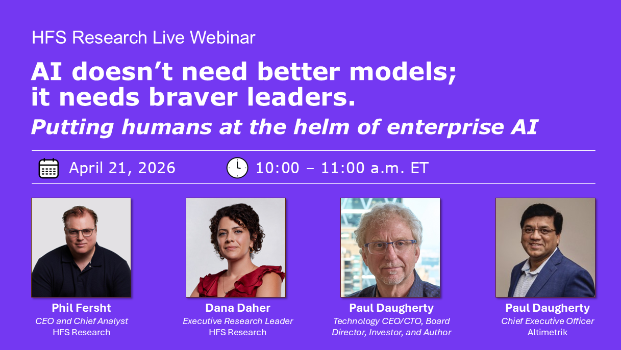 Join leaders from HFS Research and Altimetrik for an executive discussion on what’s holding enterprises back from scaling AI and how to drive real, accountable outcomes.